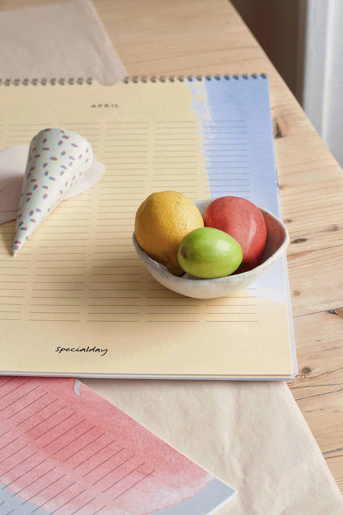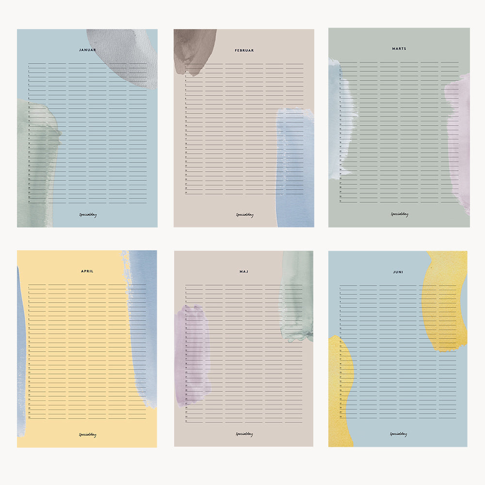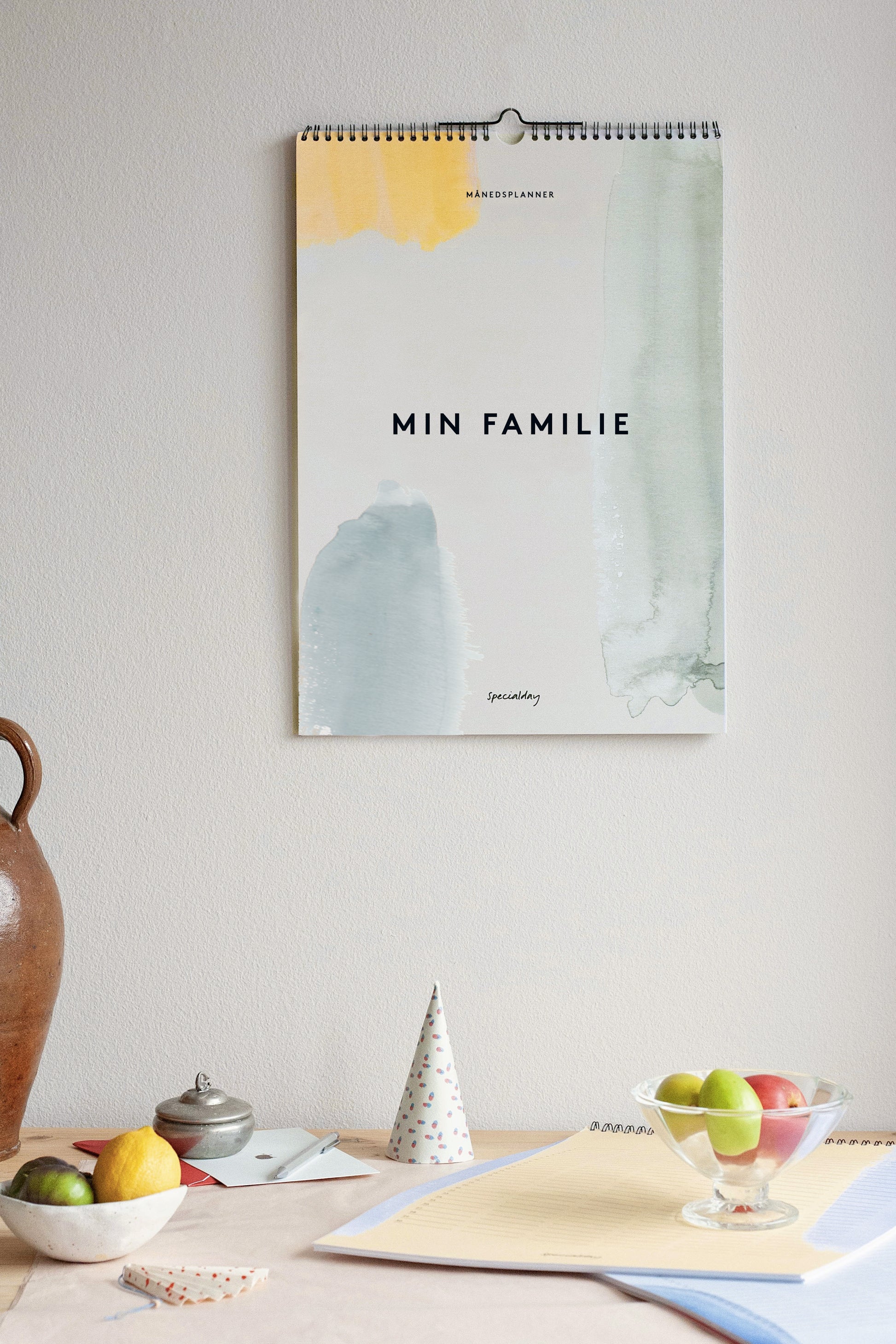 Få styr på hele familiens planer med Specialdays' elegante månedsplanner. Kalenderen er dekoreret med håndmalede akvarelillustrationer og trykt på papir i høj kvalitet – både praktisk og æstetisk smuk på væggen eller opslagstavlen.