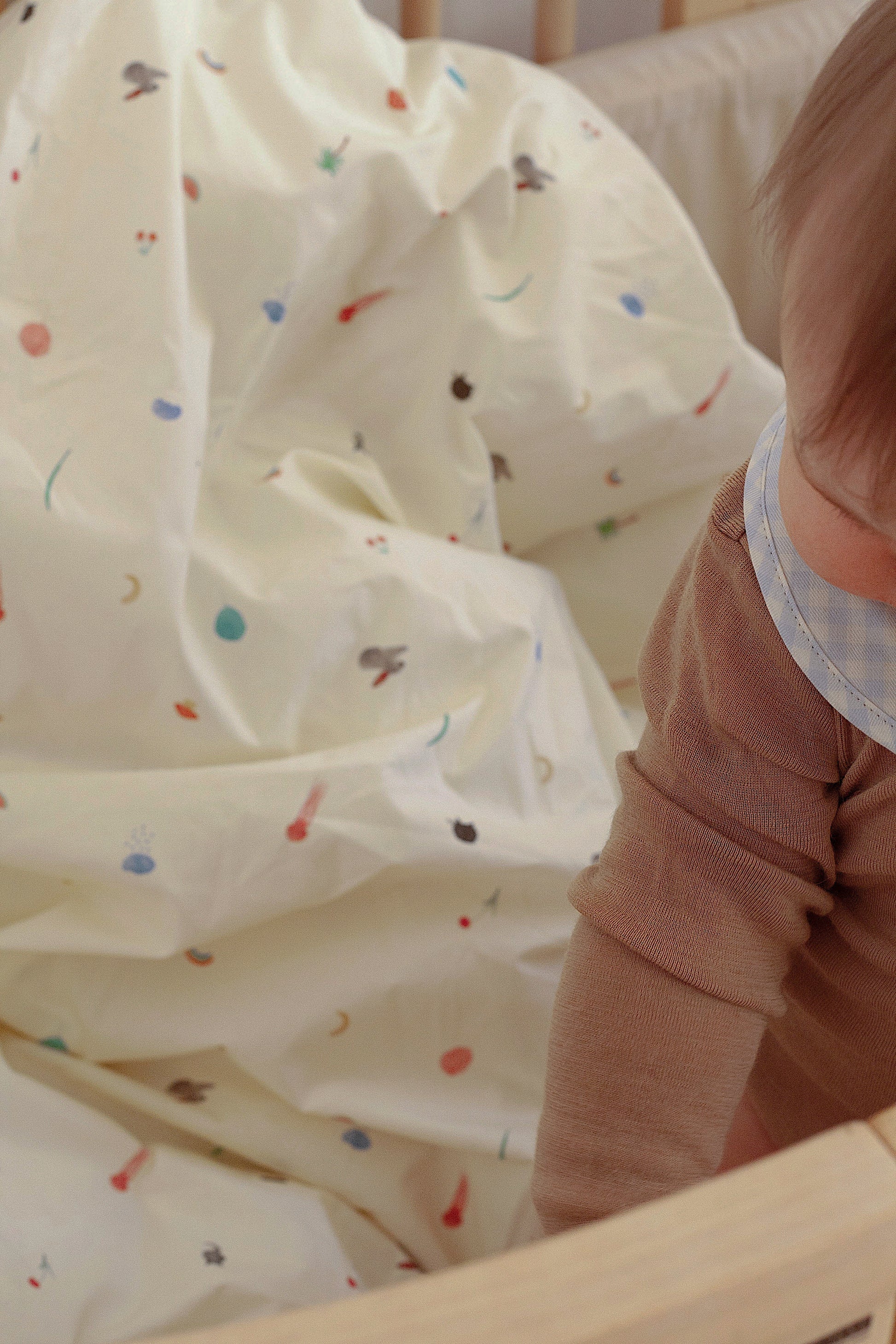 Limited and carefully selected products for baby in high quality, organic textile with our signature print, that is beautiful and inspiring to look at, for both children and and their parents.