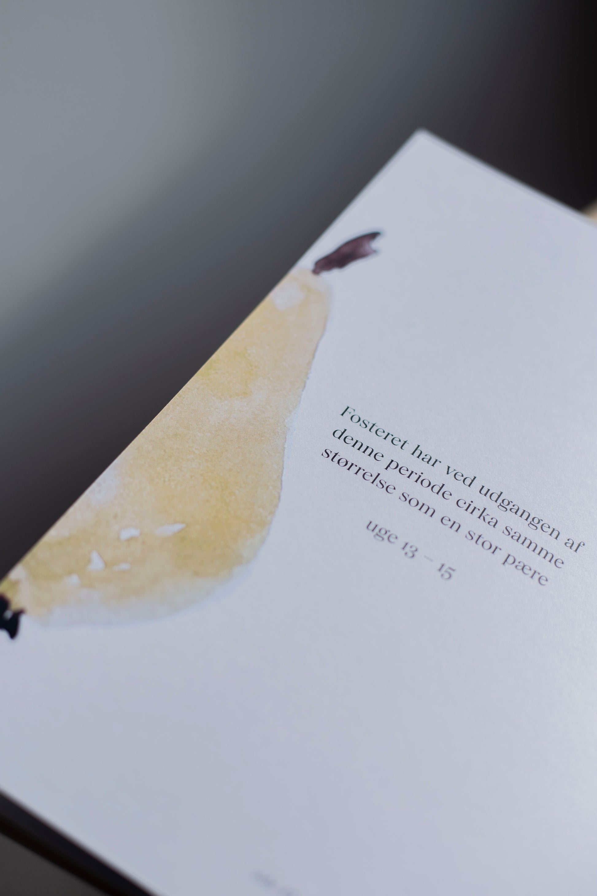- Bogen følger dig gennem de tre trimestere, men du kan begynde at udfylde den hvor end du er i din graviditet.