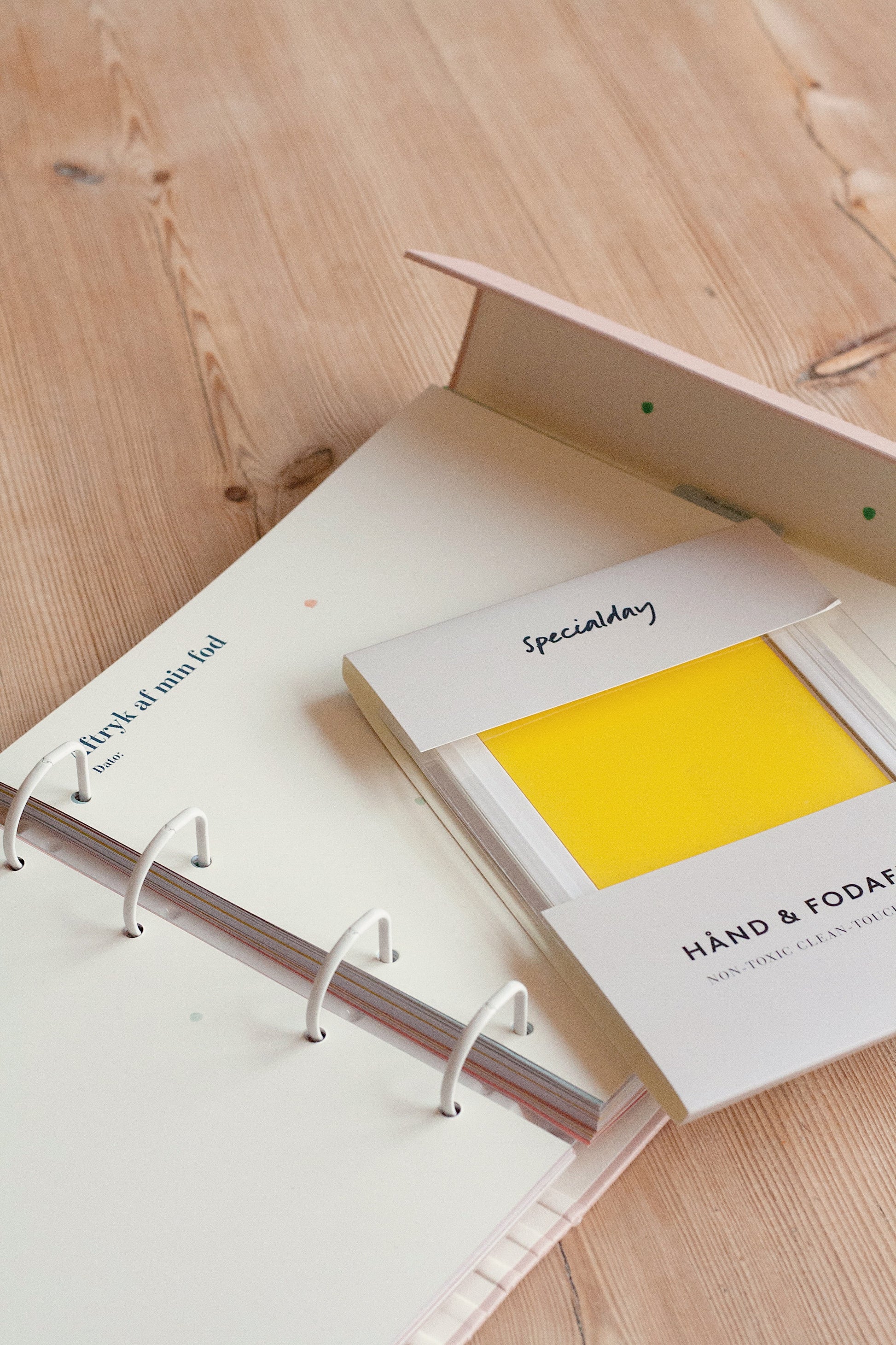 Hand and footprint for baby and small children in lovely colors that match the pages in your baby journal from Specialday.