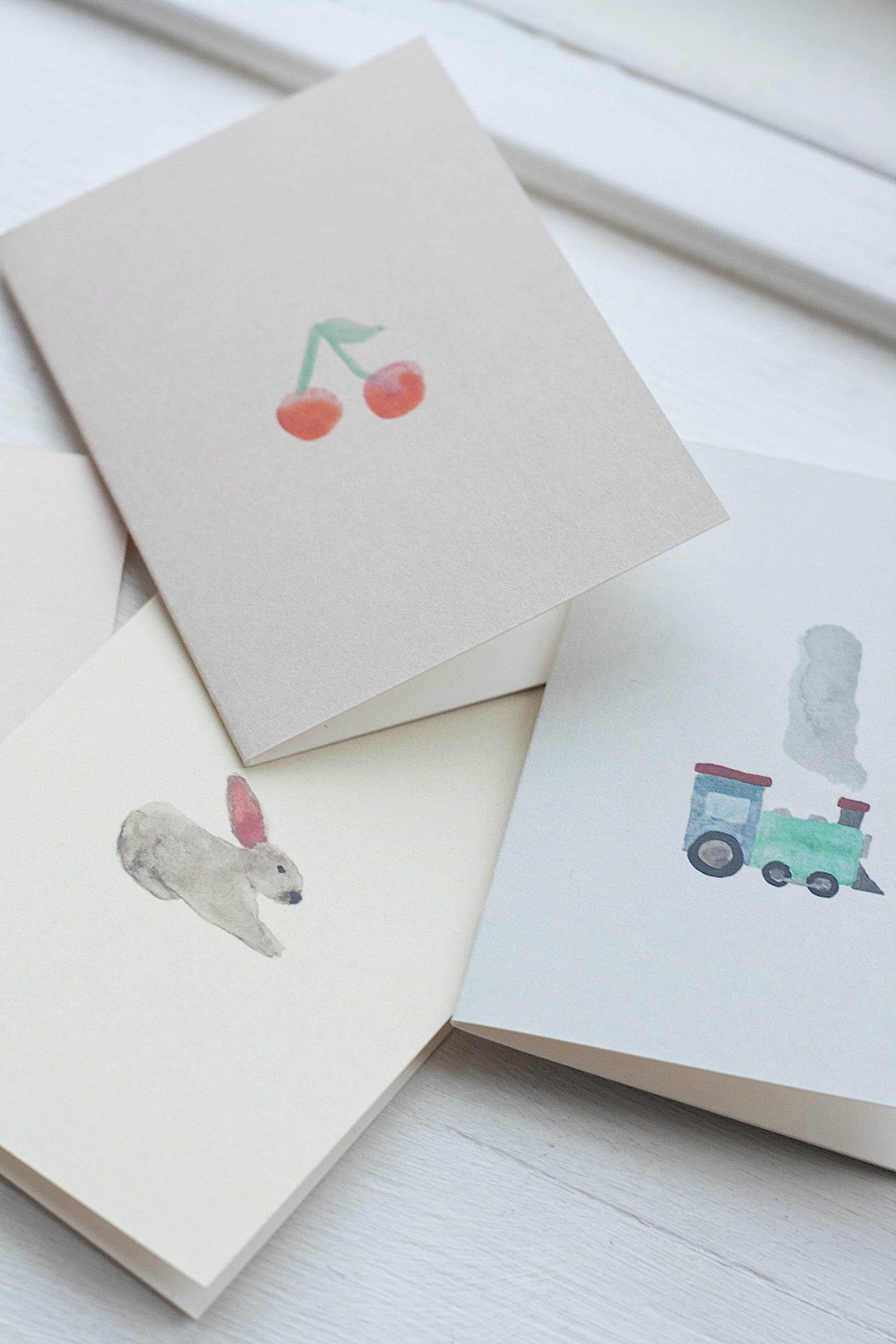 Bring joy with this card that is beautifully illustrated with small, cute, hand-painted watercolor drawings.