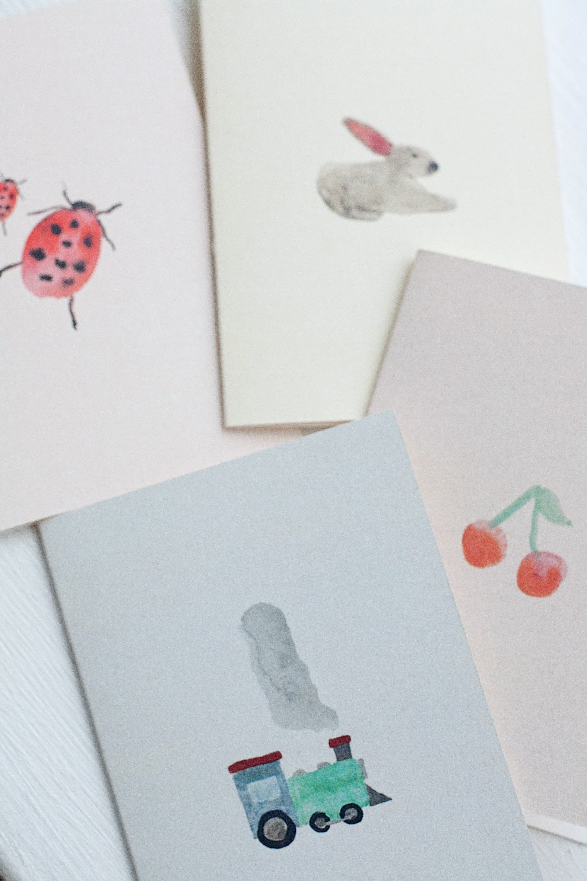 Bring joy with this card that is beautifully illustrated with small, cute, hand-painted watercolor drawings.