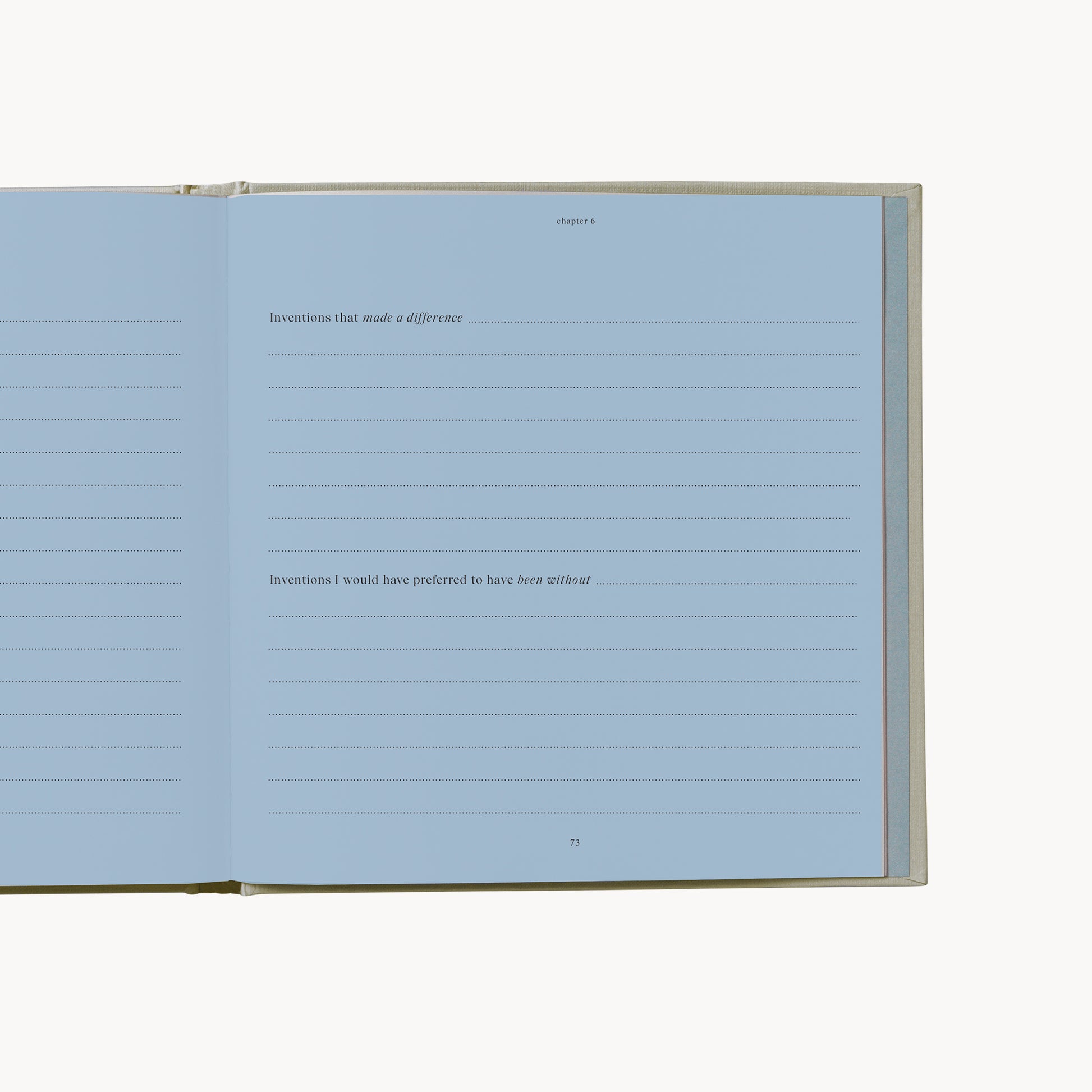 - Seven thoughtfully designed chapters offer plenty of space for words, pictures, and personal stories from a long and well-lived life.