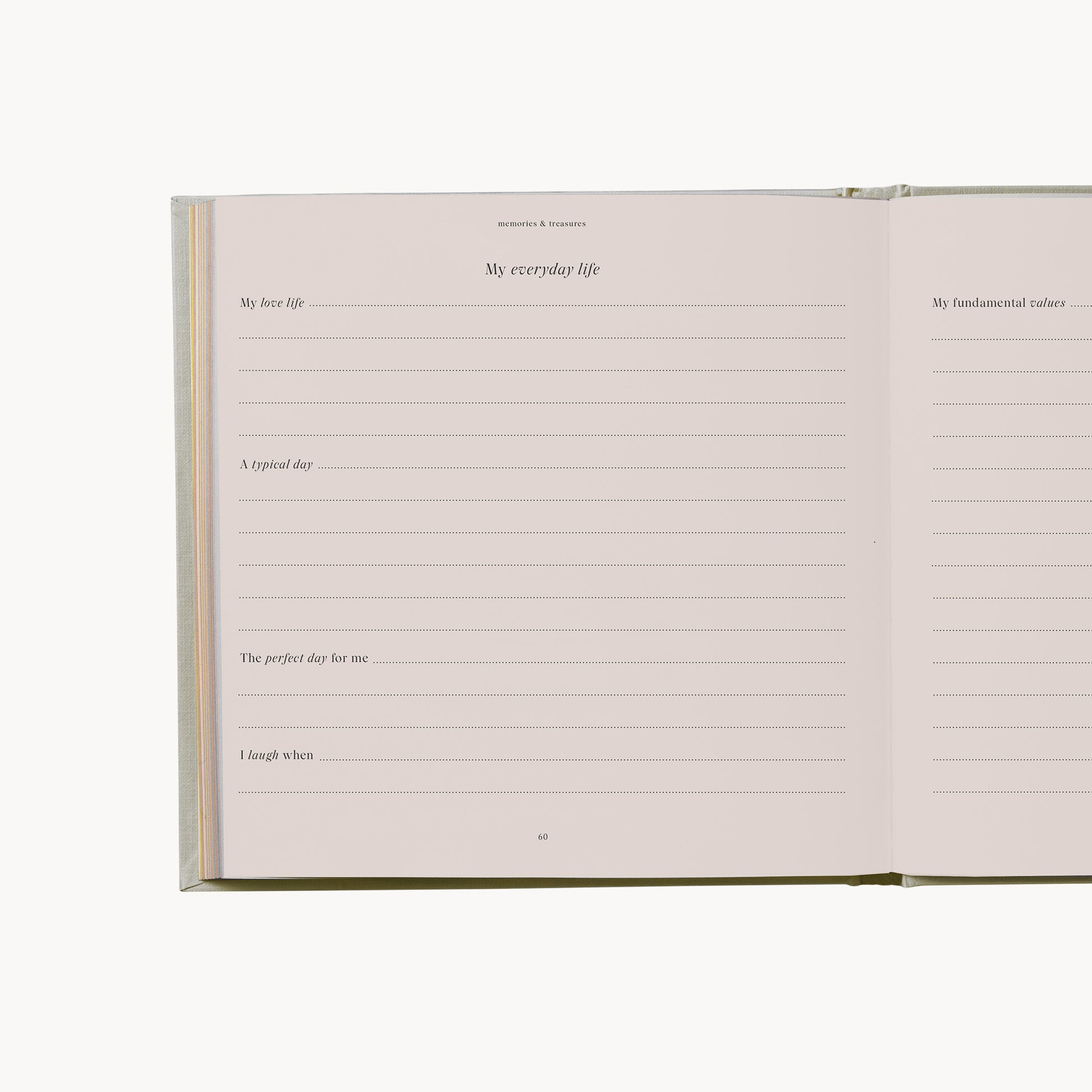 Guided questions provide inspiration and structure, helping to fill the pages with meaningful reflections, cherished moments, and significant life events.
