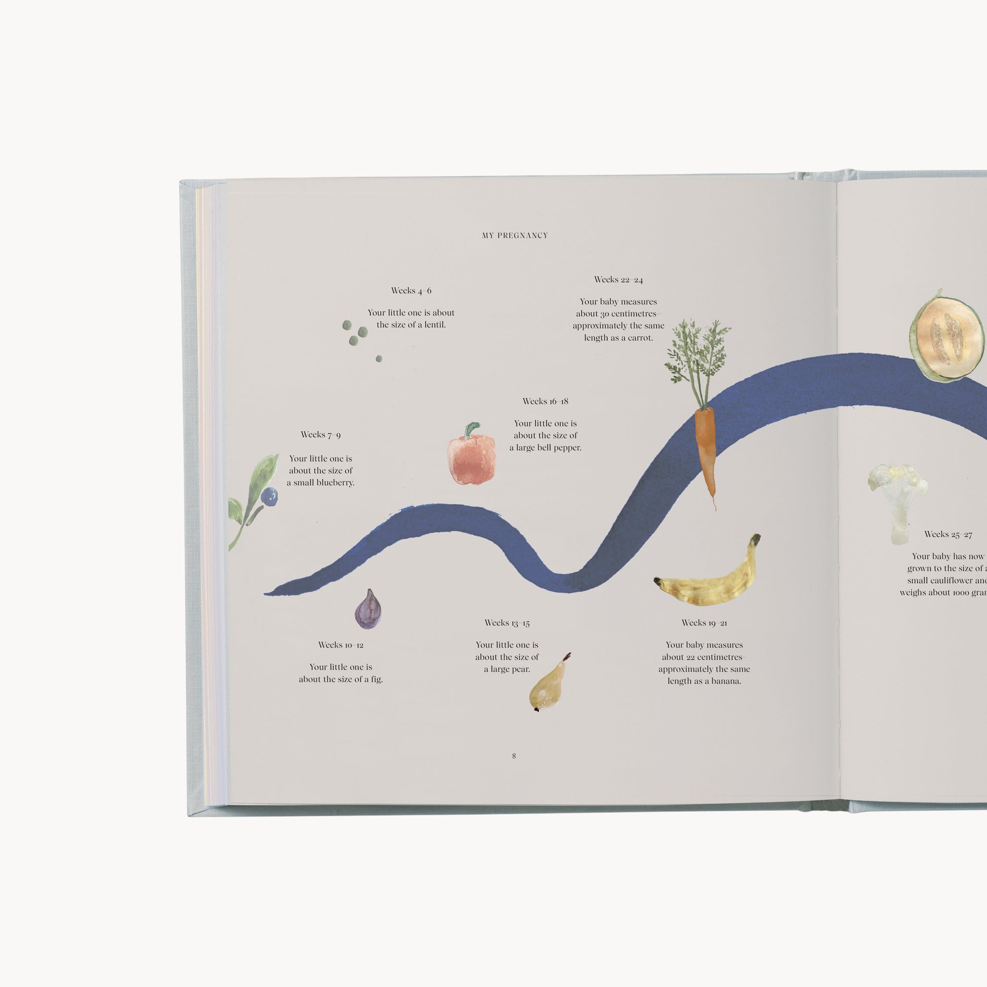 My Pregnancy – memories & treasures is a journal designed to guide and inspire you as you navigate on this incredible journey. A time of transformation, where a tiny life begins to grow, and your world can shift in beautiful and profound ways. Amid all the emotions and changes, it can be comforting to have a keepsake – a place to anchor your thoughts, document your experiences, and preserve memories from this once-in-a-lifetime chapter.