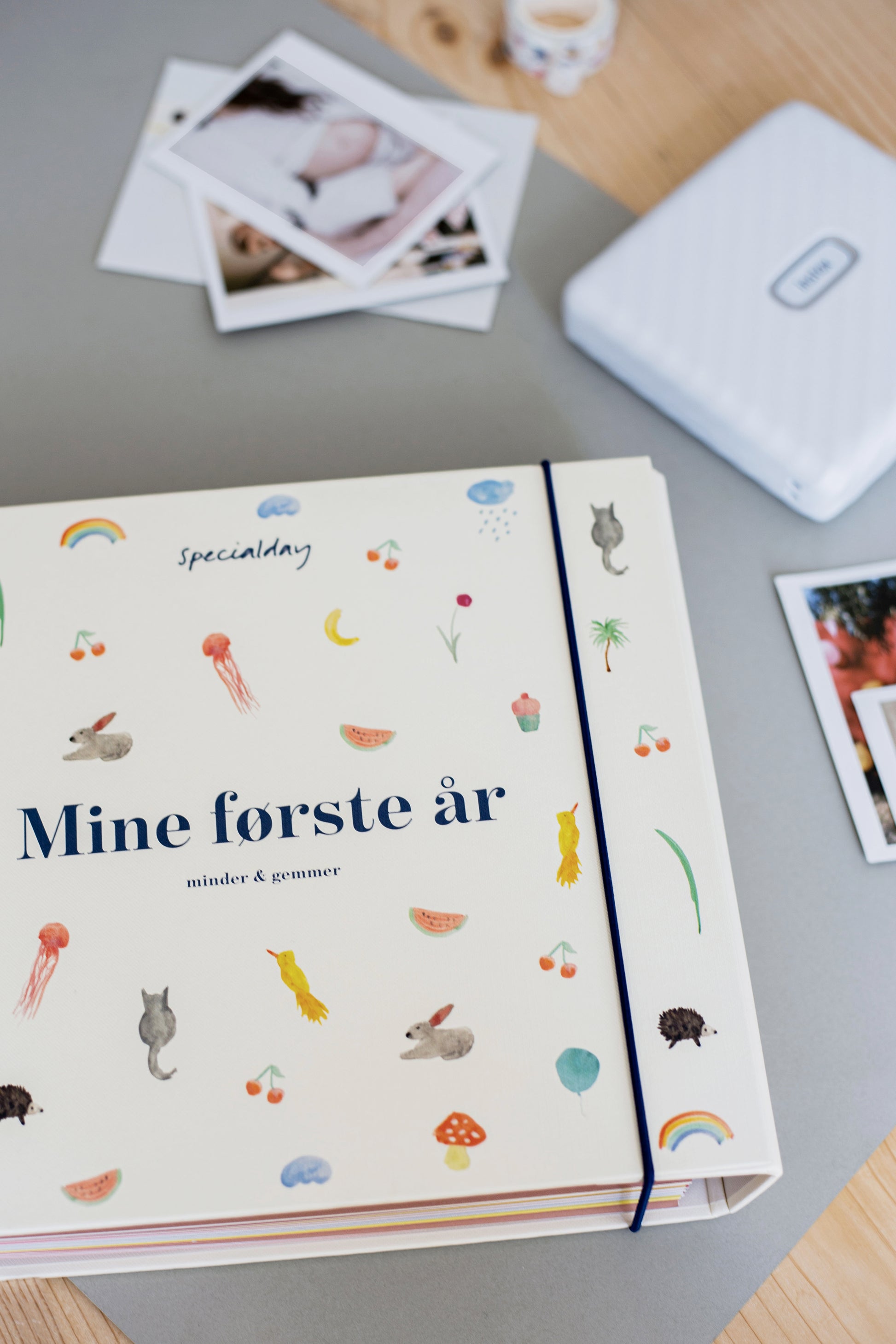 Pakke med et valgfrit mine første år album* samt en Instax Link Wide printer fra Fujifilm og en pakke med film.